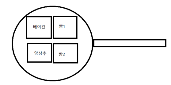 5. 양상추 -> 베이컨 -> 빵1 -> 빵2 순서입니다!!