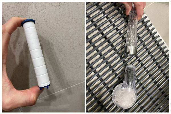 요로캐 새 필터를 준비한다음 샤워기 헤드 부분과 아래 부분을 돌려서 분리합니다.