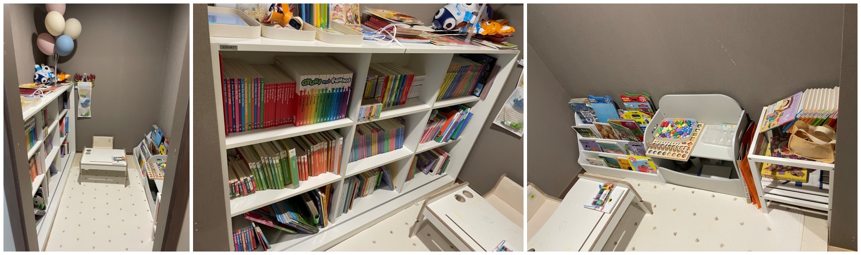 펜트리에서 아이책방으로 만들어 놓으니 집에 방하나가 더생긴 느낌이네요.