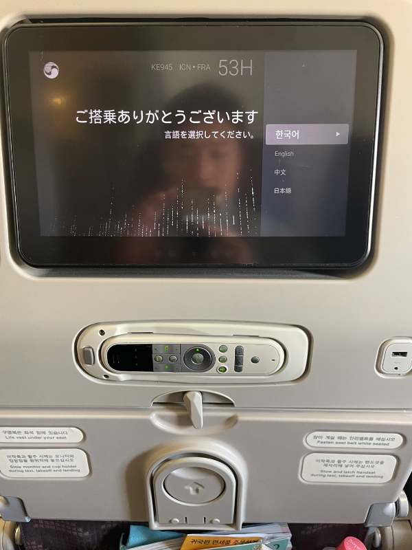 좌석에 붙은 모니터도 예전보다 커진거 같고 영화,드라마,예능등 다양한 프로그램이 들어있어서