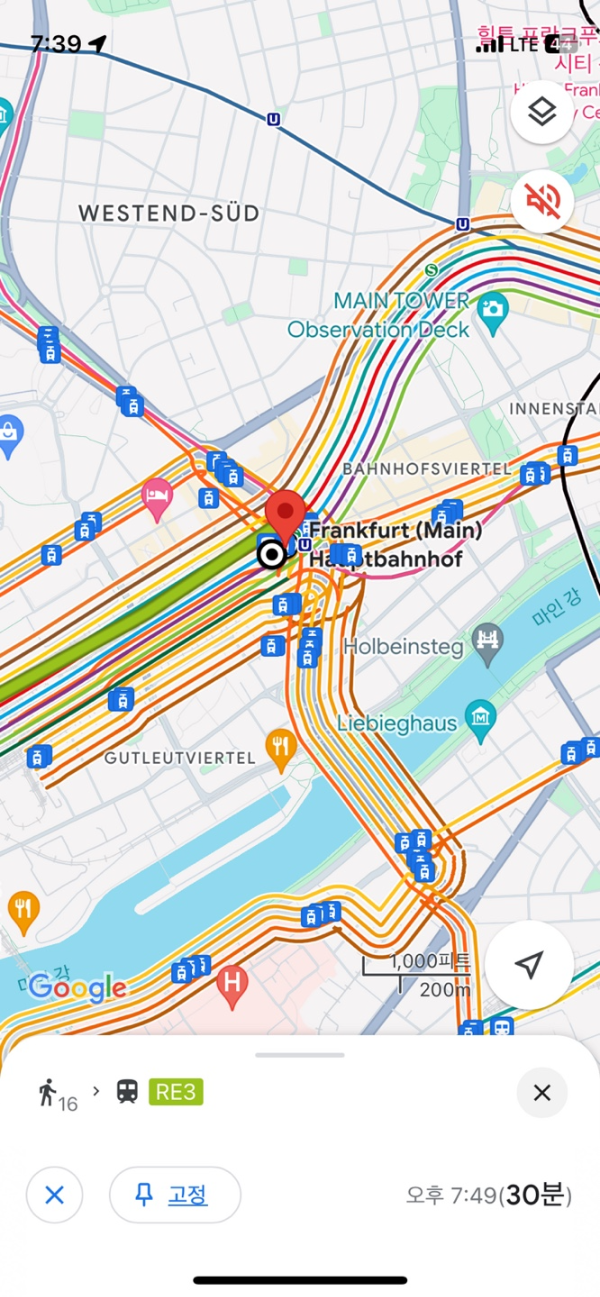 일단 구글맵으로 Frankfurt Sud 역으로 가장 빨리가는 방법을 찾아봤습니다. 택시가 가장 빠르더군요.