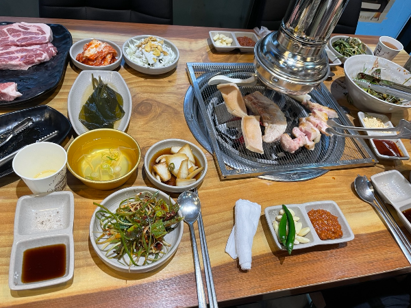 일단 참숯으로 숯을 넣어주기 때문에 고기에 베는 숯향이 맛을 더해주더라구요.