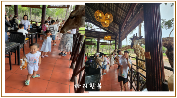 기린 먹이 주기는 30,000동에 당근을 구매해 즐길 수 있으며, 기린과의 교감은 색다른 재미가 있어요!!
