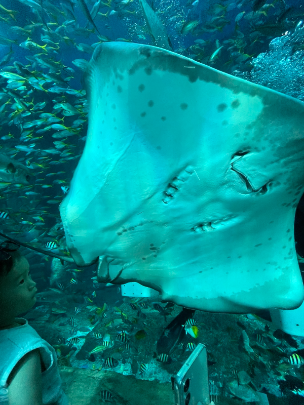울 아들이 제일 좋아하는 상어와 아싸 "가오리"가 아주 큼직하게 수족관에 들어가 있습니다!