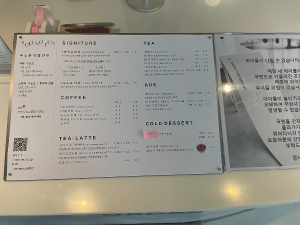 여기 시그니처 메뉴인 수노은 라떼는 꼭 먹어야 돼요.