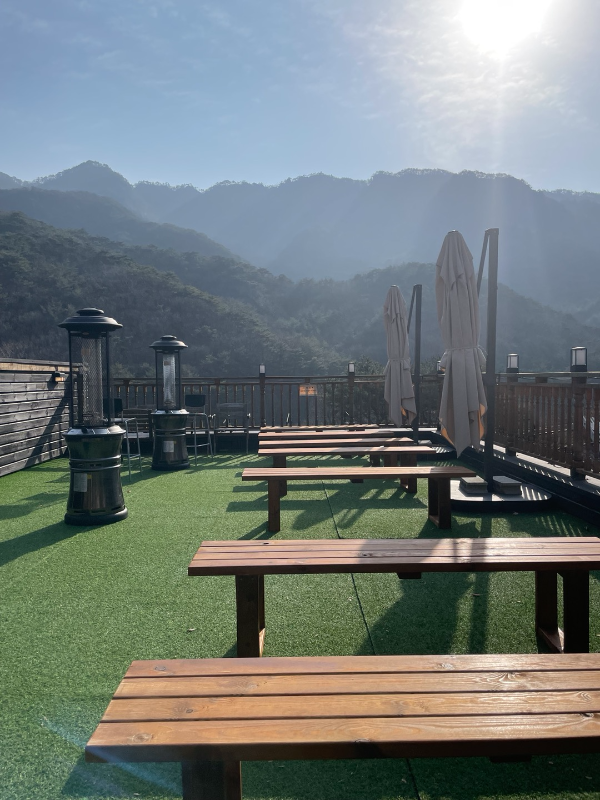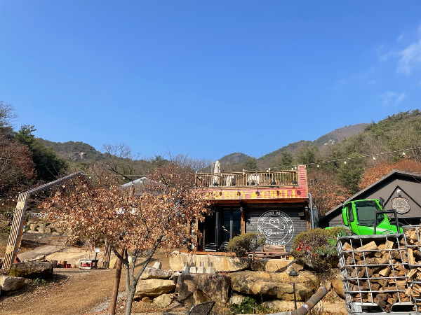 - 외부에는 불멍할 수 있는 자리와 마시멜로 구워 먹을 수 있는 공간도 마련되어 있어요.