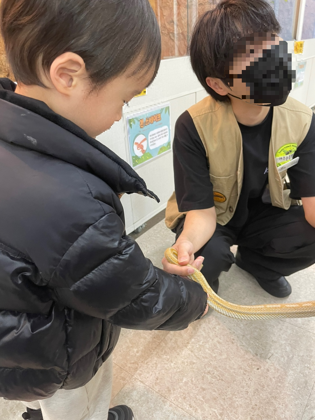 우리 아들은 곤충이나 장수풍뎅이 거북이 이런거 만지는거 좋아했는데 이번에는 뱀...까지 만지더라구요!!ㅎㅎ