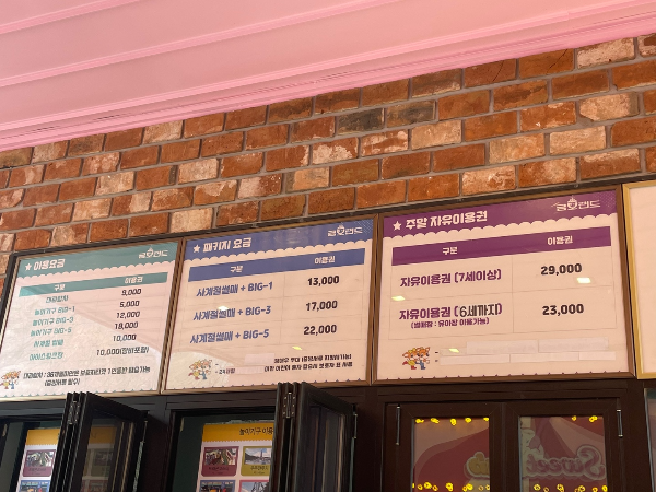 - 자유이용권: 7세 이상 29,000원 / 6세 이하 23,000원