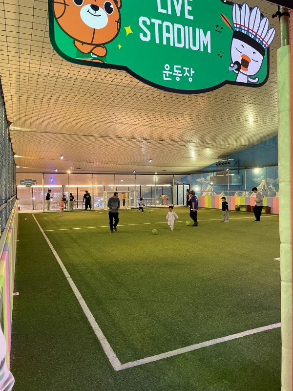 여긴 키즈카페 수준이 아니에요. 아이들이 체력 방전될 때까지 뛰어놀 수 있는 스포츠존이 마련돼 있고요, 축구, 야구, 농구는 물론이고 미끄럼틀, 복싱까지 있어요.