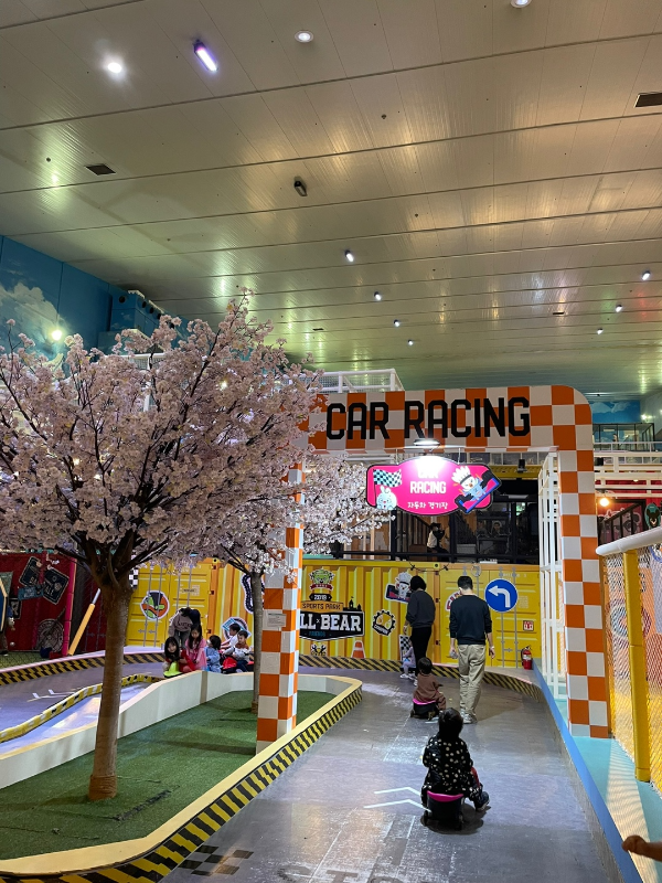 챌린지존에서는 정글짐, 스포츠 에어바운스, 자동차 레이싱이 아이들의 도전 본능을 자극해요. 특히 형아들이 정말 좋아하더라고요.