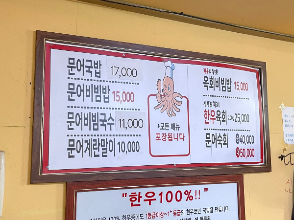 ✔️ 가격대: 문어국밥 17,000원으로 다소 높지만 한우육수 생각하면 납득
