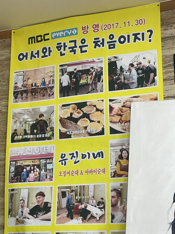 이곳은 단순한 맛집 거리가 아니라, 실향민의 삶과 추억이 그대로 남아 있는 공간이라 그런지 정겨움이 느껴져요. 그중에서도 유진이네는 2017년 MBC every1 ‘어서와 한국은 처음이지?’에 방영될 정도로 유명한 속초맛집이에요.