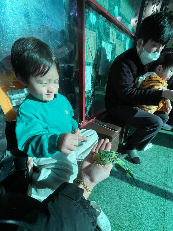 색색의 앵무새들이 손 위로 날아와 먹이를 쪼아 먹는 체험도 있어요. 빛에 반사된 깃털색이 너무 아름다워서 보는 저도 힐링 💚 아이와 가볼만한 원주실내동물원이라는 이름이 괜히 붙은 게 아니었어요. ---