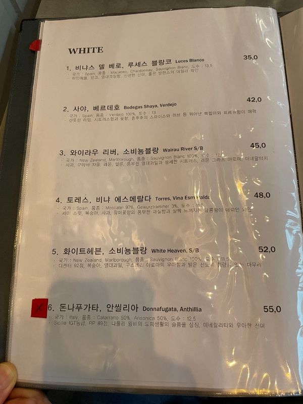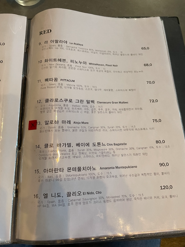 와인이 땡기는 날이라면 별도 와인 리스트 페이지도 꼭 보세요. 레드·화이트·스파클링까지 가격대도 3만 후반~10만 원대까지 폭이 넓어서, 안양 올라타파스를 와인바처럼 써도 충분하겠다는 생각이 들었어요.