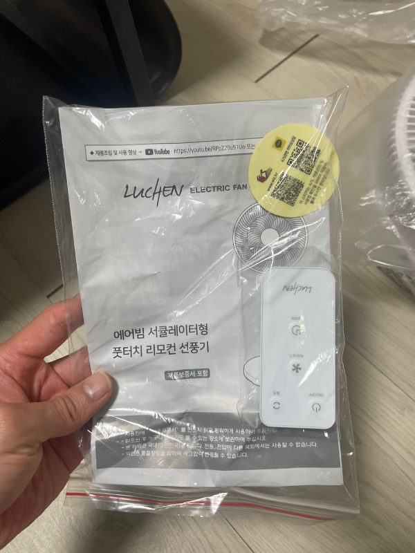 제품은 서큘레이터형 선풍기, 리모컨, 사용설명서