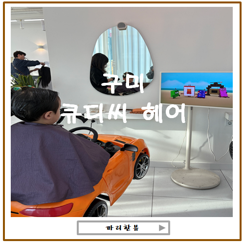 저희 아이는 까다롭고 예민한 스타일은 아니지만, 미용실에서 머리 자르는 것도 싫어하는 터라.. 가만히 앉아 있을 수 있는 그런 미용실을 찾긴 힘들었어요. 그래서 선택한 곳이 바로 구미 큐디씨 미용실이었습니다.