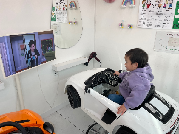 아이 키워보신 분이라면 아실 거예요. 미용실 한 번 가면 대부분은 울고, 불안해하고, 중간에 도망가려고 하고… 그런데 큐디씨에서는 단 한 번도 울지 않았습니다. 자동차 타고, 사탕 먹고, 영상 보고, 물어도 주시고… 바쁠 틈이 없어요.