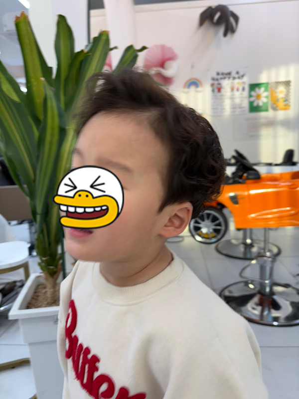 아이들은 펌이 오래 유지되지 않아서 컬이 생각보다 빨리 빠질 수 있다고 하시더라고요. 그래서 첫 펌은 살짝 더 컬을 살려 작업해 주셨고 3~5일 지나면서 가장 예쁜 느낌이 나왔어요. 실제로 마지막 스타일 상태는 아래처럼 자연스럽게 잡혀 있습니다.