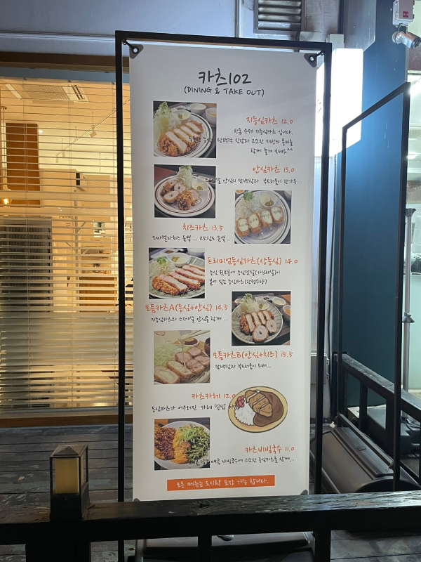 카츠102의 메뉴판은 단순하지만 다양한 구성으로 되어있어요
