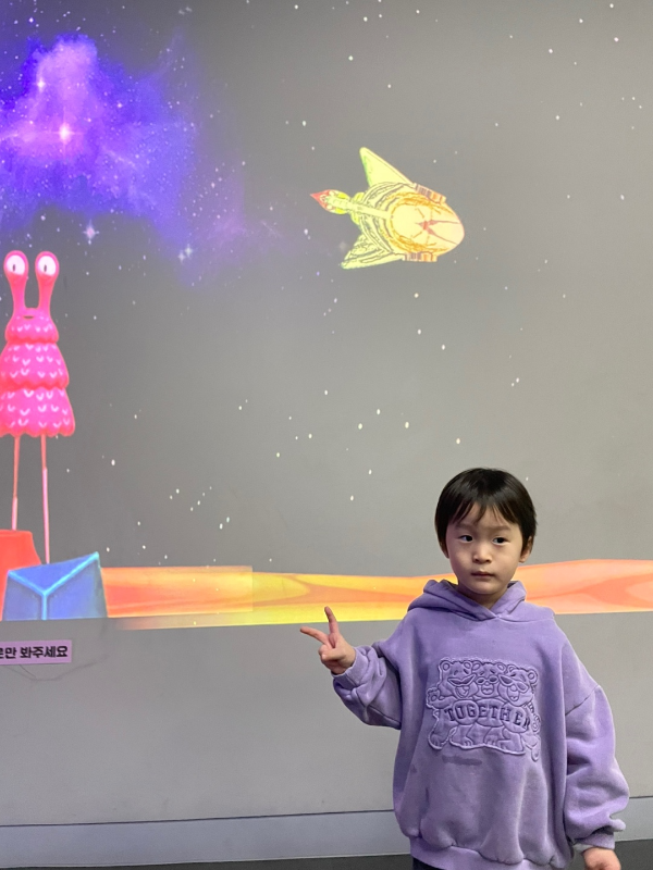 우주를 날아다니는 모습을 보면서 아이가 한참을 바라보더라고요.