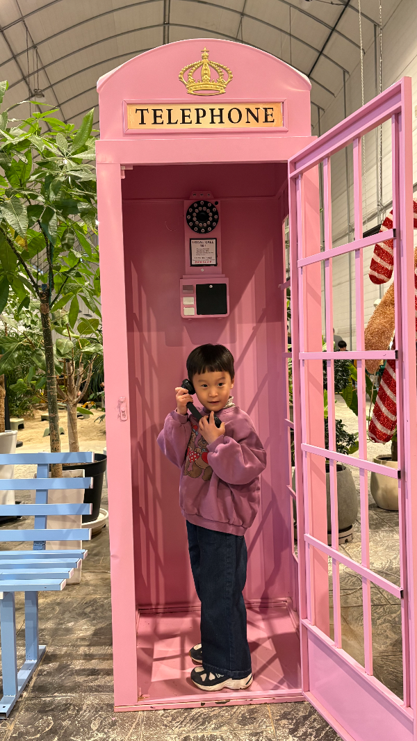 아이들이 제일 좋아하는 곳이 이 핑크 전화부스예요.