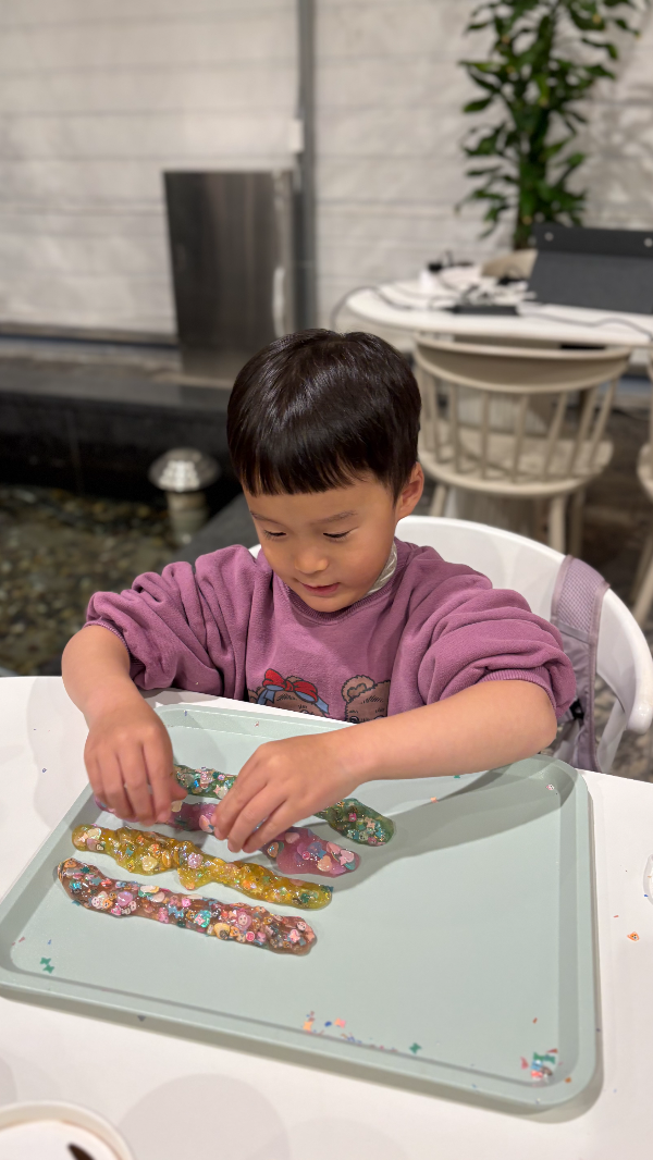 아이 표정만 봐도 여기가 얼마나 재밌는지 느껴져요. 손으로 만들고 꾸미는 놀이가 아이들한테 진짜 잘 맞는 공간이에요.