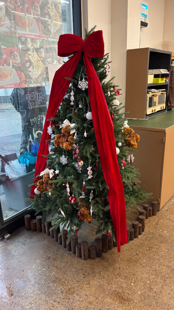 카페 중앙에 진짜 큰 크리스마스트리가 딱!