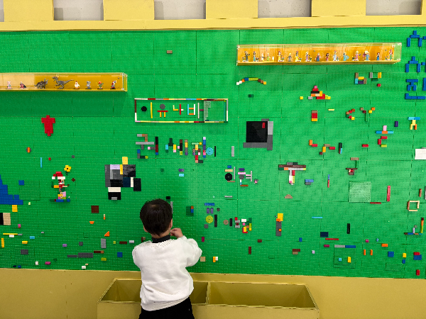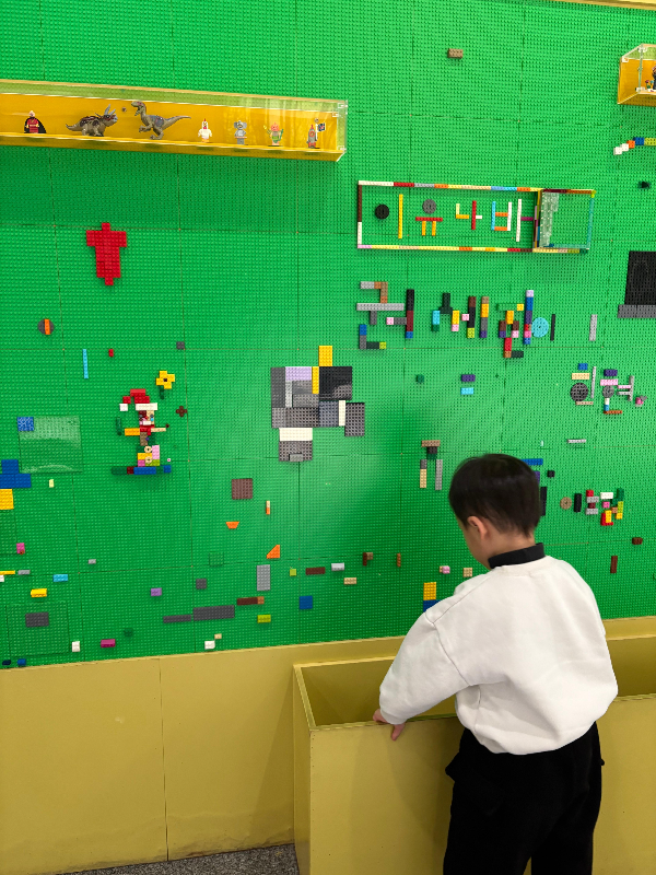 벽 전체가 레고판이라 아이가 자기만의 세상을 만들 수 있어서 30분 넘게 집중하더라고요.