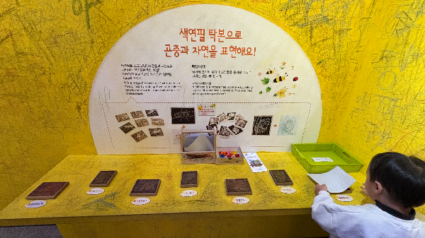팔만대장경 처럼 목판에 곤충과 나뭇잎을 본떠놔서 종이를 그위에 올리고