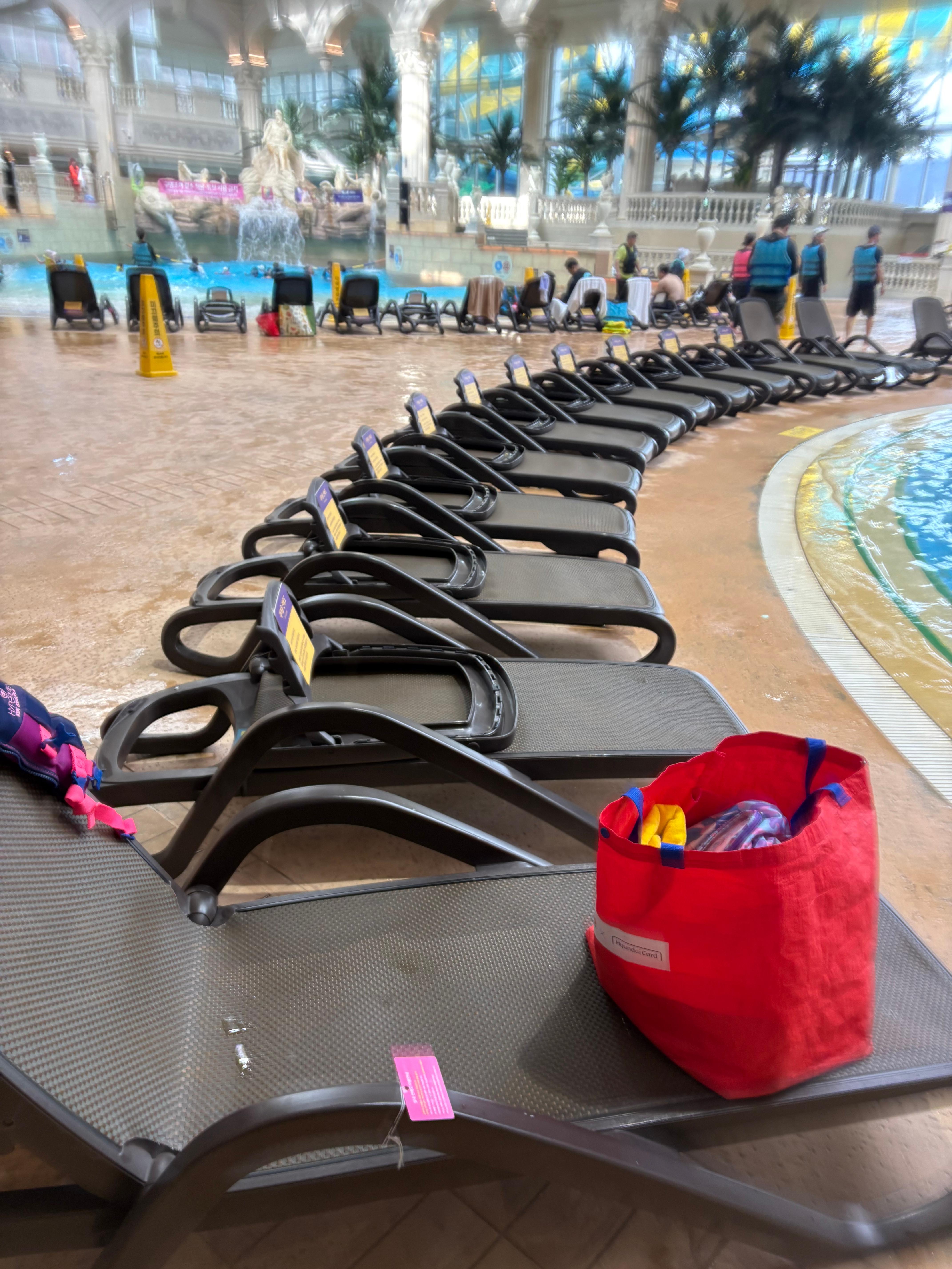 저는 작은 가방 하나라 선베드 옆쪽 아무 바닥에 나두었는데