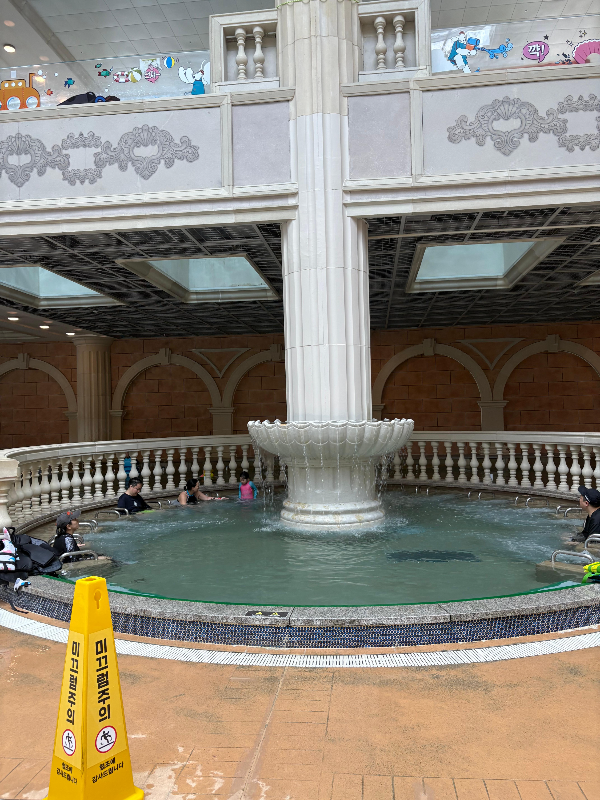 실내에는 여기저기 온수탕이 있어요