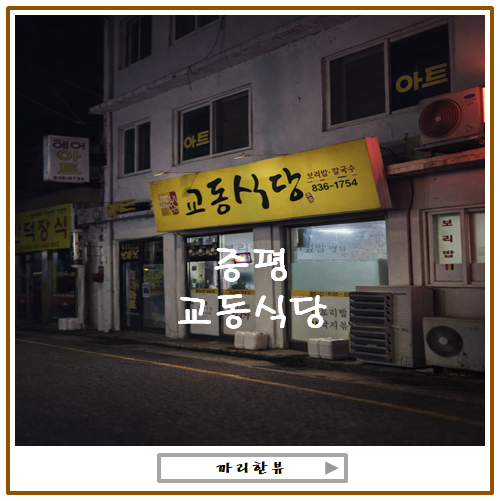 바로 증평 보리밥 맛집으로 알려진 교동식당이었어요.