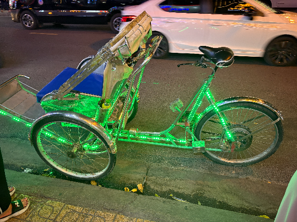 숙소 앞 번화가에서 LED 불빛을 번쩍이며 서 있는 씨클로가 눈에 들어왔습니다.
