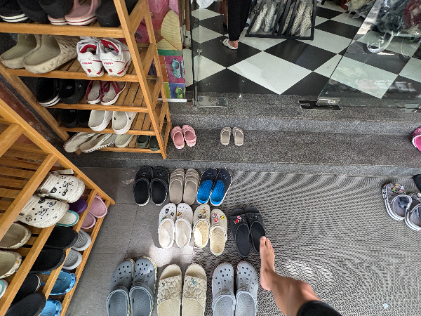 매장 앞을 보면 신발을 벗고 들어가야 해서 입구에 신발들이 쭉 정리돼 있는데요.