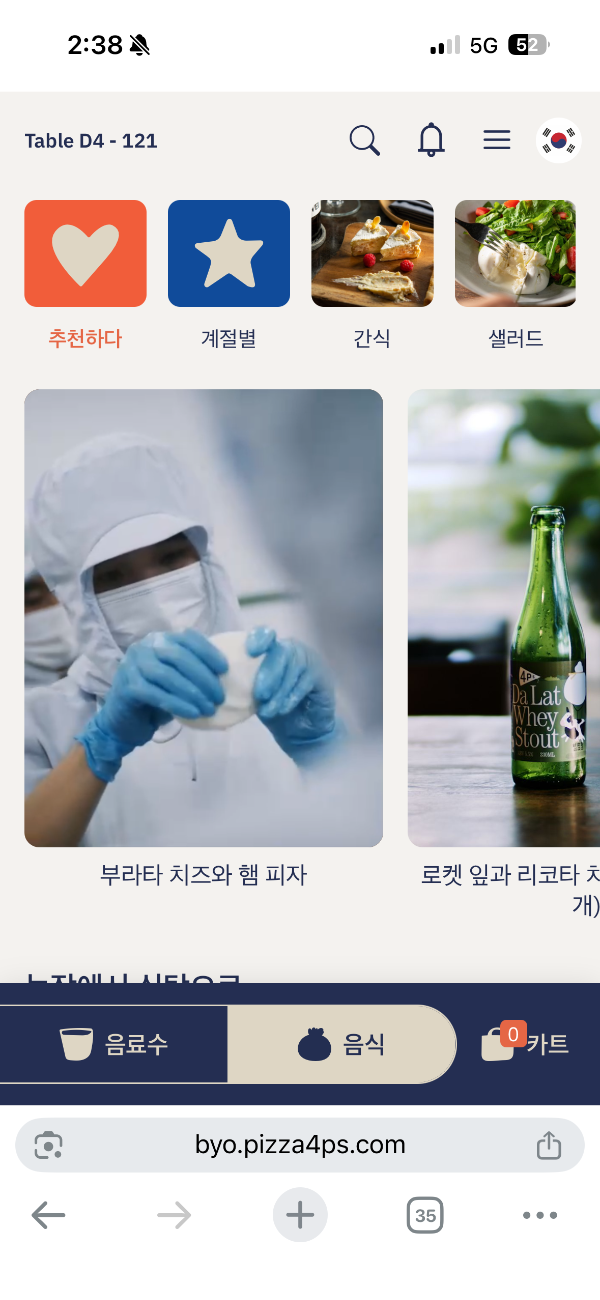 메뉴는 피자, 파스타, 샐러드, 음료 등 다양한 메뉴로 구성되어 있습니다.