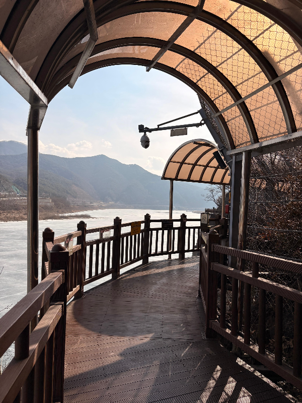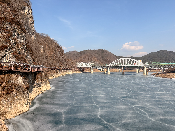잔잔하게 얼어있는 강 위 풍경이 정말 독특했습니다.