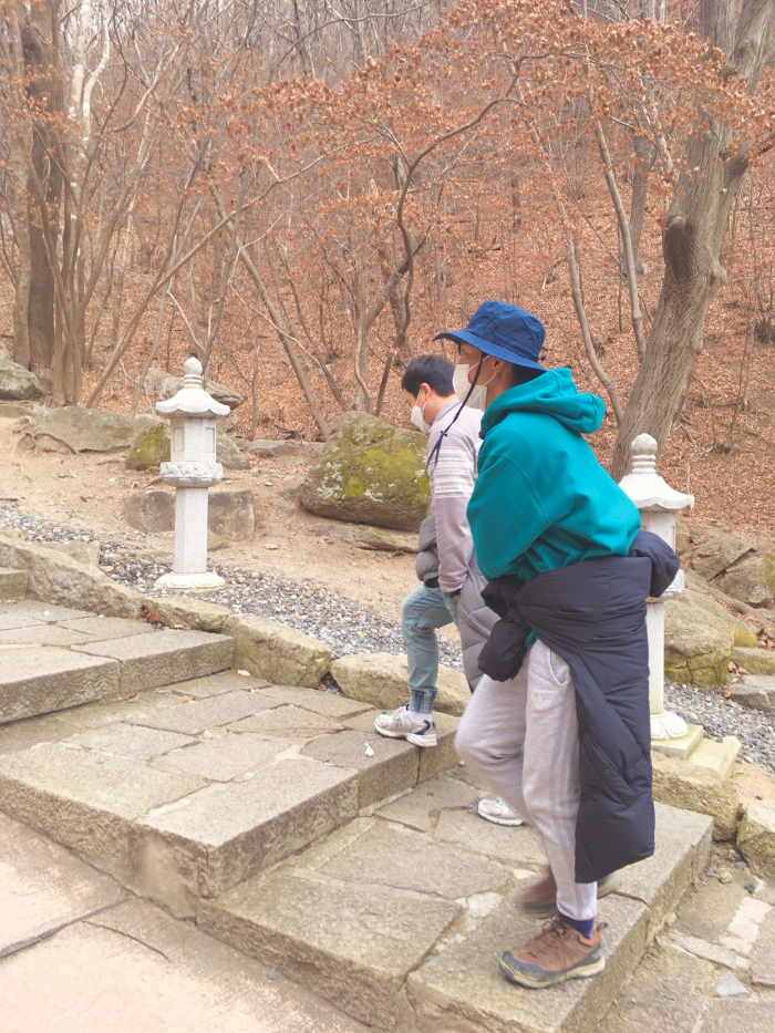 산 정상까지 이어진 돌계단을 오르며 마음을 정화할 수 있는 힐링 코스